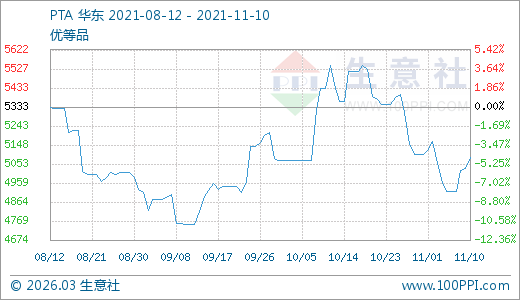 11月10日PTA價格5084.00元/噸 5天上漲3.35%