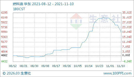 11月10日燃料油5550.00元/噸 60天上漲17.46%