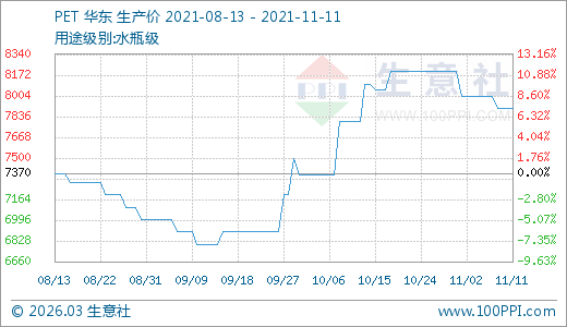 PET 11月11日最新價(jià)格7900.00元/噸,最近60天上漲16.18%。