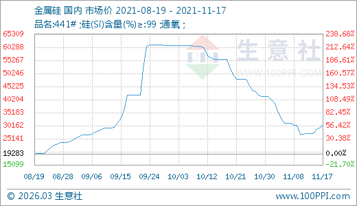 11月17日金屬硅30375.00元/噸 5天上漲12.33%
