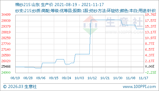 11月17日棉紗29166.67元/噸 60天上漲11.32%