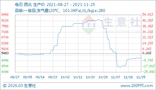 11月25日電石5133.33元/噸 15天上漲15.79%