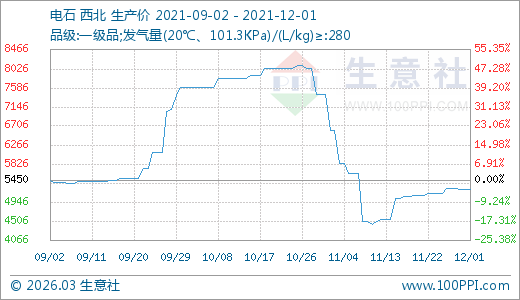 12月01日電石5233.33元/噸 20天上漲16.30%