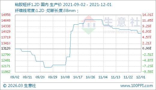12月01日粘膠短纖13960.00元/噸 60天上漲14.05%