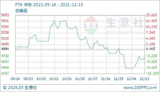 12月13日PTA價(jià)格4712.00元/噸 10天上漲5.63%