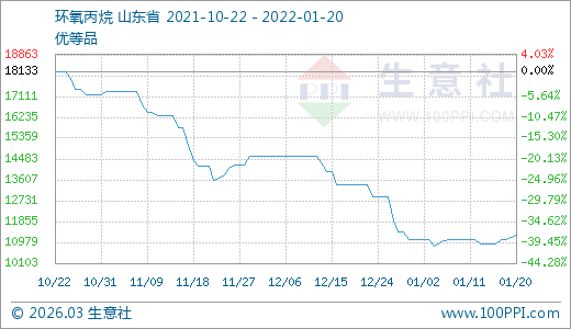 01月20日環(huán)氧丙烷11300.00元/噸 5天上漲3.67%