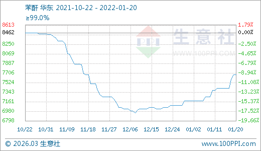 01月20日苯酐7675.00元/噸 5天上漲3.54%