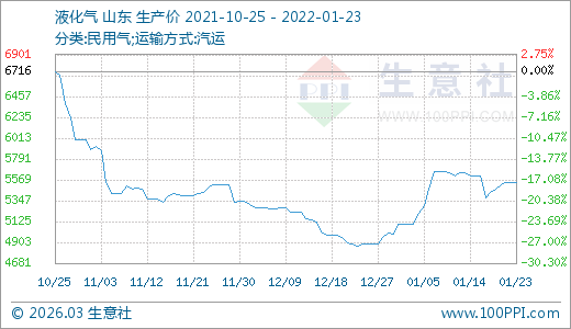 01月23日液化氣5534.00元/噸 30天上漲13.40%