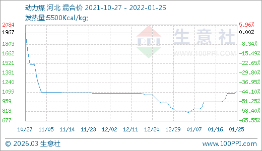 01月25日動(dòng)力煤1107.50元/噸 5天上漲11.73%
