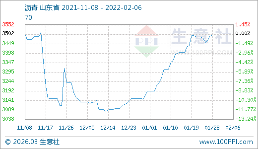 瀝青02月06日最新價格3497.20元/噸,最近60天上漲11.69%。