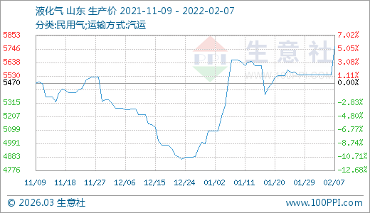 液化氣02月07日最新價(jià)格5764.00元/噸,最近5天上漲4.04%。