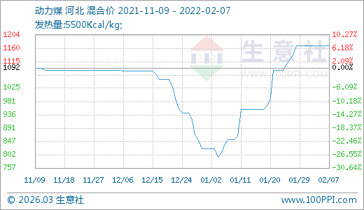 02月07日動(dòng)力煤1167.50元/噸 15天上漲7.60%