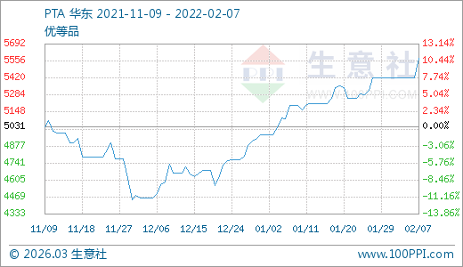 02月07日PTA價格5579.00元/噸 60天上漲17.92%