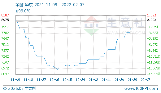 02月07日苯酐7925.00元/噸 60天上漲13.21%