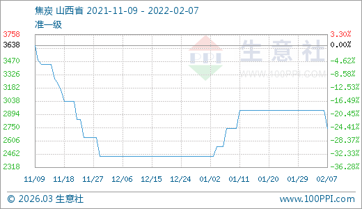 02月07日焦炭2738.00元/噸 60天上漲12.31%