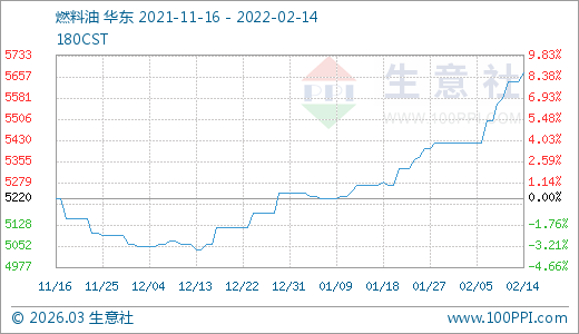 02月14日燃料油5670.00元/噸 60天上漲12.06%