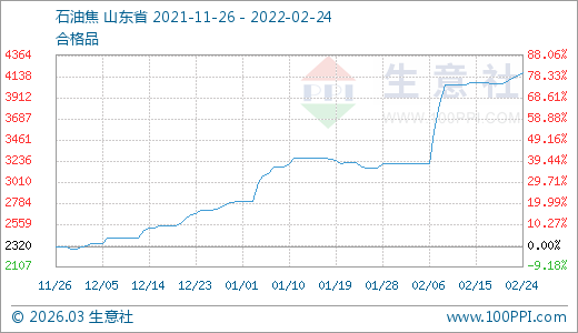 石油焦02月24日最新價格4176.25元/噸,最近20天上漲30.20%,30天上漲32.06%,60天上漲54.18%。