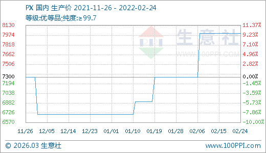 PX 02月24日最新價格8000.00元/噸,最近60天上漲19.40%。