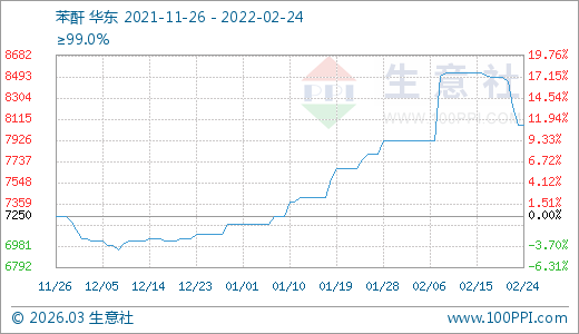 02月24日苯酐8062.50元/噸 60天上漲13.76%
