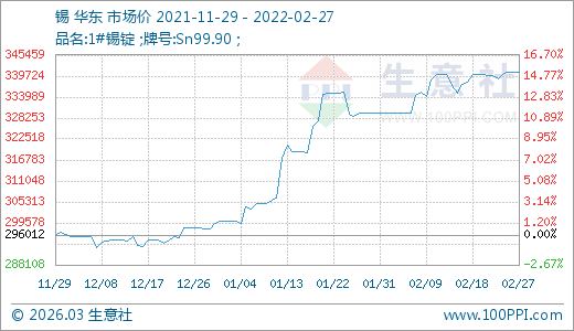 02月27日錫340680.00元/噸 60天上漲14.39%