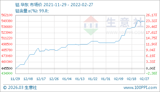 02月27日鈷548900.00元/噸 60天上漲12.66%
