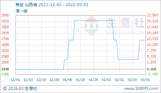 03月01日焦炭2738.00元/噸 5天上漲7.88%