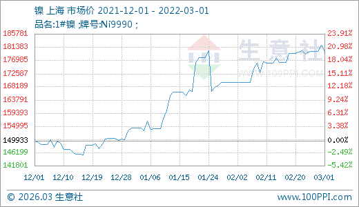 鎳03月01日最新價(jià)格179916.67元/噸,最近60天上漲16.55%。