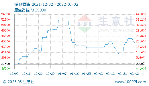 03月02日鎂44500.00元/噸 10天上漲8.98%