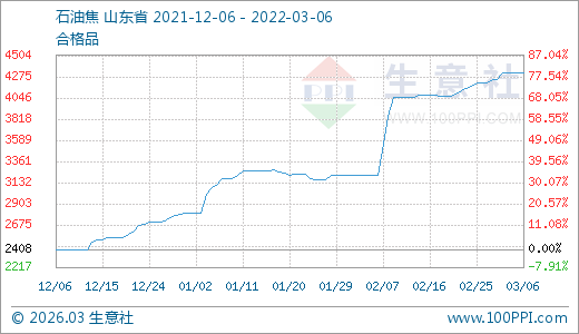 石油焦03月06日最新價格4313.75元/噸,最近30天上漲34.49%,60天上漲40.23%。