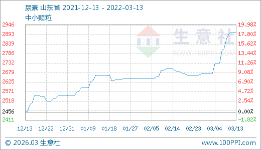 03月13日尿素2902.00元/噸 5天上漲3.16%