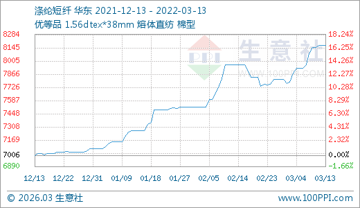 03月13日滌綸短纖8168.33元/噸 60天上漲12.38%