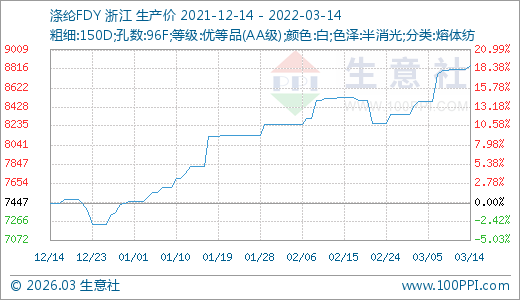 03月14日滌綸FDY價格8848.57元/噸 60天上漲13.05%