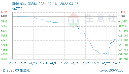 03月16日醋酸4890.00元/噸 10天上漲14.20%