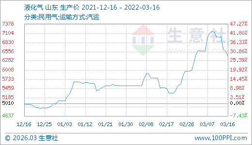 液化氣03月16日最新價(jià)格6430.00元/噸,最近20天上漲11.32%,30天上漲17.77%。