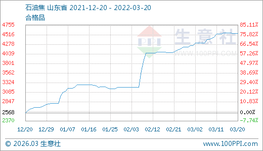 03月20日石油焦4548.75元/噸 30天上漲11.87%