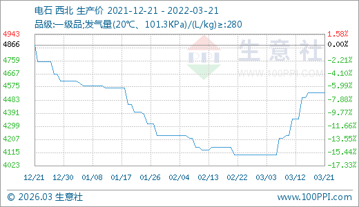 03月21日電石4533.33元/噸 15天上漲10.57%