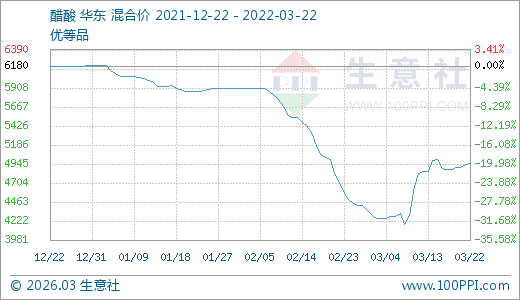 03月22日醋酸4950.00元/噸 15天上漲14.53%