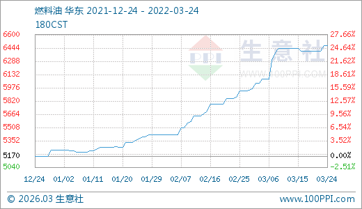 03月24日燃料油6470.00元/噸 30天上漲10.60%