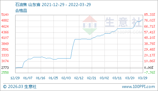 03月29日石油焦4925.50元/噸 5天上漲3.02%