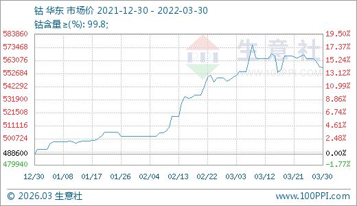 03月30日鈷557300.00元/噸 60天上漲10.93%