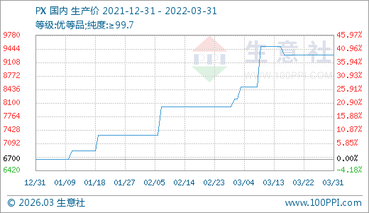PX 03月31日最新價格9300.00元/噸,最近30天上漲13.41%,60天上漲27.40%。