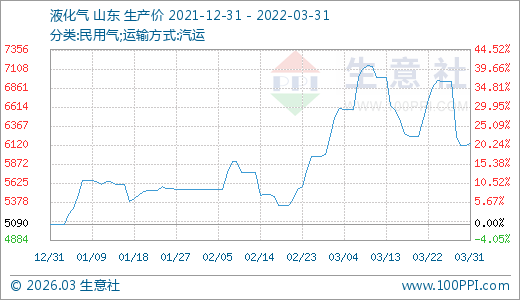 液化氣03月31日最新價格6140.00元/噸,最近60天上漲10.83%。