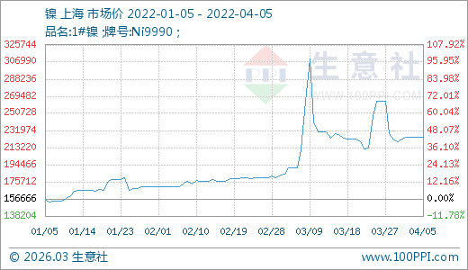 04月05日鎳224283.33元/噸 30天上漲17.31%