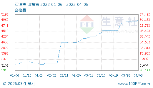 04月06日石油焦5008.00元/噸 15天上漲9.85%