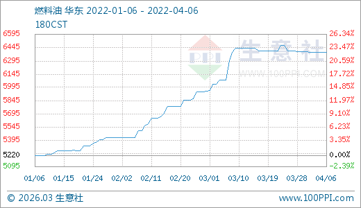 04月06日燃料油6390.00元/噸 60天上漲17.90%