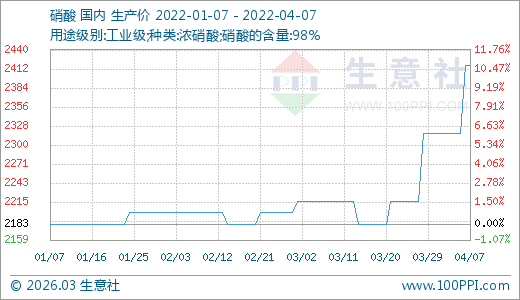 04月07日硝酸2416.67元/噸 5天上漲4.32%