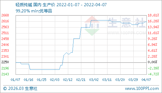 04月07日純堿2612.50元/噸 60天上漲19.43%