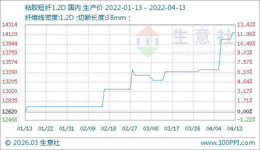 04月13日粘膠短纖14160.00元/噸 10天上漲5.36%