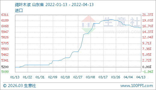 04月13日木漿6040.00元/噸 60天上漲13.11%