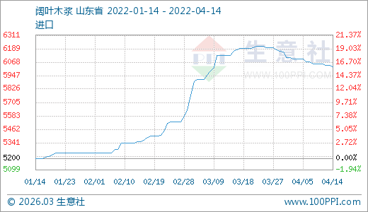 04月14日木漿6030.00元/噸 60天上漲12.92%